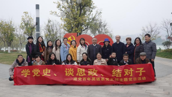 2021年12月8日下午,英语系党支部组织本系党群教职工前往后湖国际艺术园举行“学党史、谈思政、结对子”建党百年主题党日活动,邀请了积极分子等教职工参加。