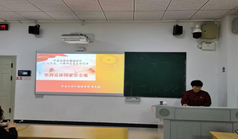 为加强国家安全教育,提升支部党员的国家安全意识,2022年5月18日下午,大外五、六教研室党支部特邀永利总站ylzz55党委委员侯先绒副院长以“坚持总体国家安全观”为题,在外语院南楼105教室为全体支部党员讲授专题党课。会议由支部书记段慧如教授主持,唐陆军同志作会议记录。