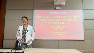 最后,侯先绒副院长对本次研讨会做了总结发言。侯院长肯定了三位发言人对课程思政的深入思考和实践,指出外语院教师一定要深刻认识到课程思政的重要性,理解课程思政的内涵和目标,以“三进”为契机,与时代同频共振,打开高校外语教师职业的新格局。