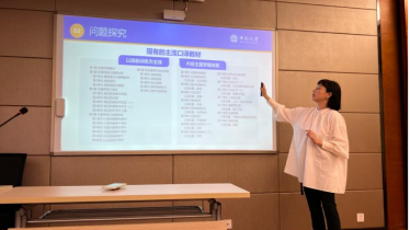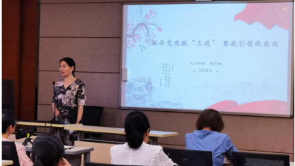 第二阶段的会议发言人是大外四教研室党支部书记周文珺。她以“融合党建抓‘三进’ 思政引领促教改”为主题,从对“三进”工作的理解、将“三进”融入党建工作的尝试以及对思政引领促教改的思考三方面进行了分享。大外四教研室党支部将理论学习形式创新作为党建工作突破口,开展了集体深入学习《习近平谈治国理政第四卷》并绘制思维导图的党建活动。通过学习,教师党员增强了对党的理论的理解和认同,建立了“三进”的坚实理论基础。另外,周书记结合大外新增的高级英语选修课“英语话中国”,提出面对大学英语总课时减少和学分降低的现状,只有将价值引领和技术赋能相结合,课内和课外教学活动混合联动,才可能最终达成教学目标。