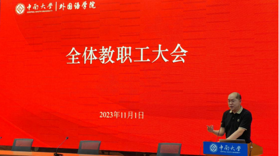 党委书记李涛从党的建设要强化党委班子建设、党支部建设、党员队伍建设,充分发挥党委班子政治核心作用、党支部战斗堡垒作用、党员先锋模范作用,以引领学院各项事业发展;严格落实意识形态责任制,加强意识形态阵地平台建设、队伍建设、内容建设,把好课堂关、教材关、学术论坛关、招人进人关、校园活动关、学生社团关、合作交流关,以确保学院各项事业发展;加强学院文化建设,凝练学院特色文化,着力学院历史文化,着重学院学科文化,建好学院文化阵地,培养学院文化队伍,打造学院文化品牌,以助力学院各项事业发展;加强政治思想工作,加强课程思政组织建设,完善课程思政机制建设,制定课程思政时间表路线图,注重课程思政探讨研究和实践创新,以促进学院各项事业发展等方面报告了学院开学以来的工作。学期过半,时间过半,工作过半,针对后半学期学院工作,李涛强调,新一任班子经过一段时间的学习和实践探索,进一步凝练并明确学院发展思路为:加强党的建设,以党建统领学院发展;加强队伍建设,以人才拉动学院发展;加强学科建设,以学科支撑学院发展;加强制度建设,以制度保障学院发展;加强文化建设,以文化促进学院发展;加强内外交流,以合作拓宽学院发展。李涛强调,全体教职员工要坚定信仰、胸怀理想、满怀信心、忠诚事业、热忱职业、奉献岗位。他倡导全体教职员工从我做起、从现在做起、从小处做起,立足不同的教书育人、管理育人、服务育人岗位,勇担使命、勇于进取,积极地“干起来、赶起来、活起来”,不断盘活社会资源,努力激活学术资源,以每个人的努力汇聚学院的发展之力,以每个人的奉献成就学院的创新发展。