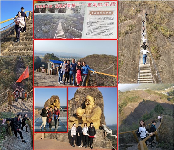 下午的行程是前往平江县长寿镇,这里也是湘鄂赣省苏维埃旧址所在地。此地的红军营是全国闻名的红色旅游胜地,因为1928年彭德怀发动平江起义之后,途径长寿、龙门时,与敌人浴血奋战,突出重围。两个支部的党员们呼吸着新鲜的空气,重走长征路,攀爬仙姑岩,走过摇摇晃晃的木板桥,高声歌唱着毛主席的诗词:“红军不怕远征难,万水千山只等闲……”党员的精神面貌在山水之间得到了全新的洗礼。