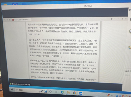 接下来,支部宣传委员冯树元同志带领大家认真学习了《习近平在美国友好团体联合欢迎宴会上的演讲》全文。通过学习,党员们深刻体会到人民在中美关系中的重大作用,深刻领悟到处理中美关系的根本是遵循相互尊重、和平共处、合作共赢。