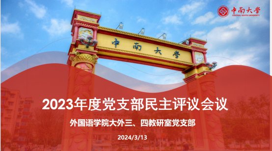 阳春三月,春暖花开。313日下午两点,大外三、四教研室党支部召开了新学期第一次支部会议。15名党员齐聚外语院南楼119教室,进行2023年度党员民主评议。会议由支部书记谢芸同志主持。